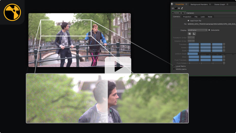 Todos los plates se someten a tracking automático para generar cámara 3D y puntos clave. El sistema exporta automáticamente la cámara y la inserta en Nuke y en las escenas de Maya.